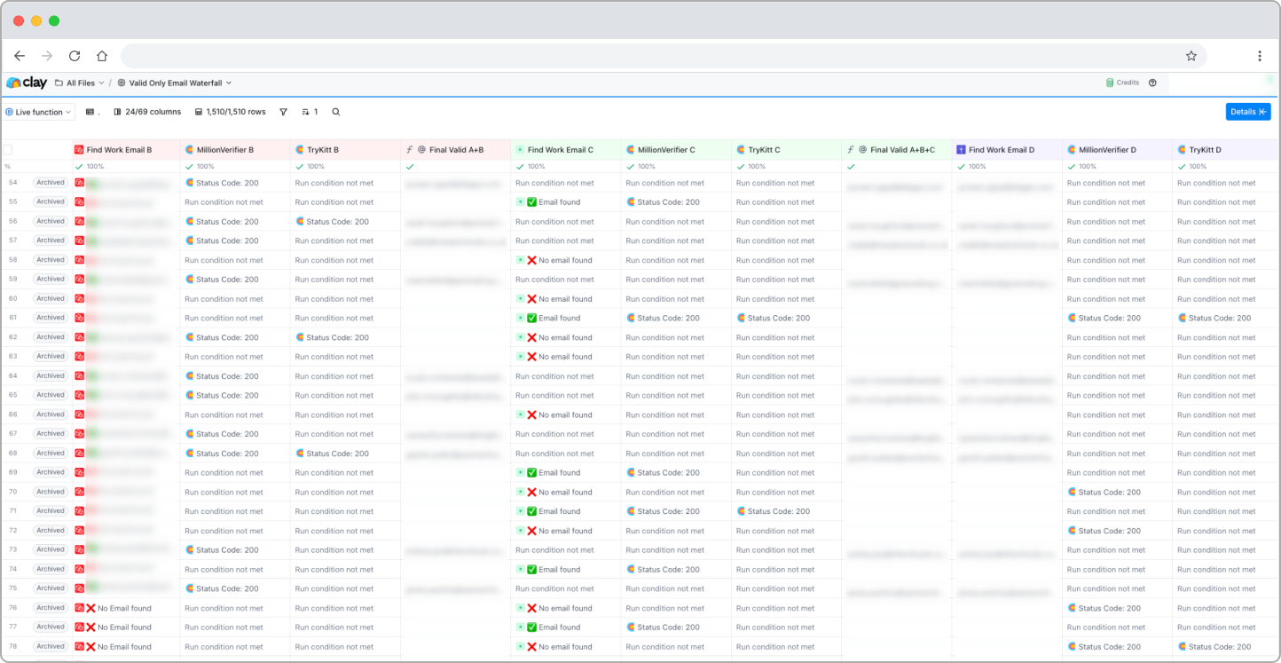 - LeadMagic runs on the leads where Icypeas could not find an email.