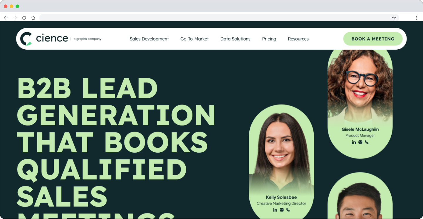 What sets CIENCE apart is the software layer. Their graph8 AI platform (formerly CIENCE GO) includes a 140M+ contact database, intent data, multichannel campaign orchestration, and visitor identification. Most traditional lead gen agencies resell third-party tools. CIENCE built theirs, which means the SDR team and the data layer run on the same stack. The company operates on two tracks: managed SDR services and platform access.
