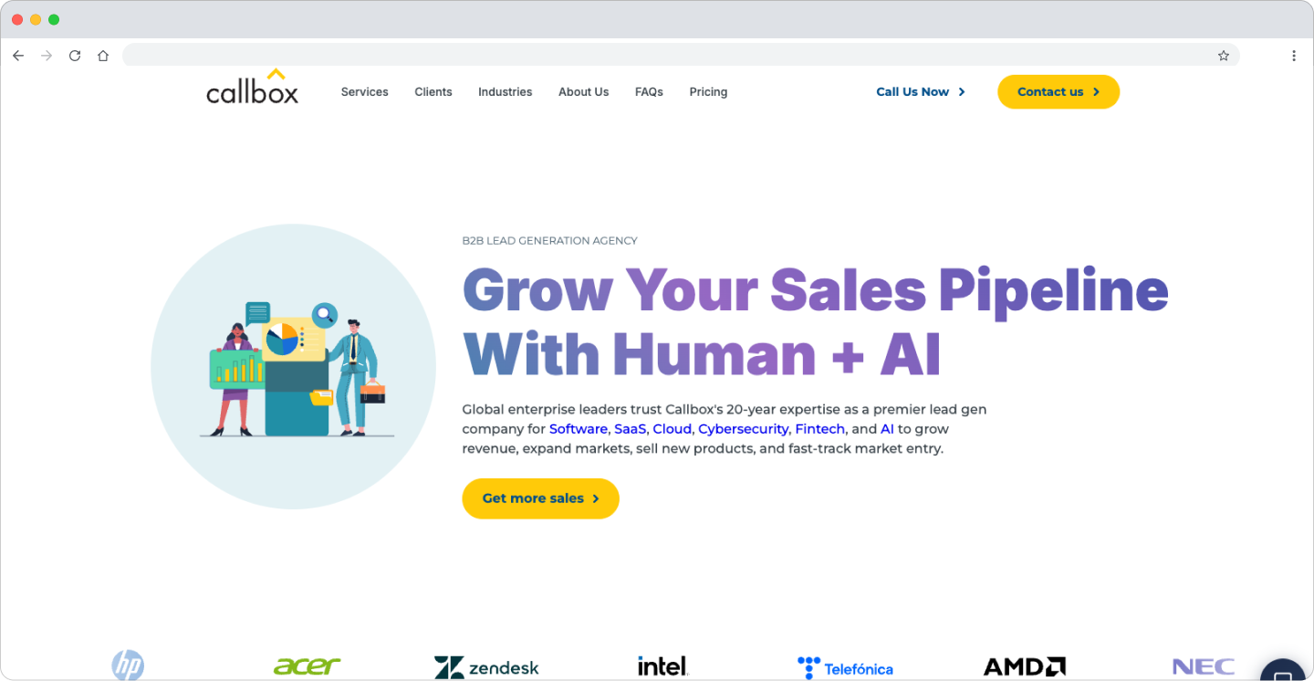 Callbox is the longest-operating agency on this list, founded in 2004 and headquartered in Encino, California. Over 20+ years they have delivered 1.3 million qualified leads across 20,000+ lead generation programs for 15,000+ clients in 60+ countries. They have delivery hubs in the Philippines and satellite offices in Singapore, Australia, and Malaysia.