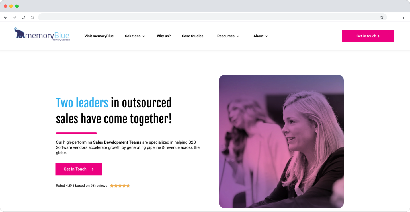 The focus is account-based outbound into named enterprise accounts, with a specialty in helping software vendors expand into new geographic markets. Services include outbound SDR programs, inbound lead qualification, channel partner recruitment, and ABM acceleration. Since the memoryBlue acquisition, they operate within a broader SMART services framework (Sales, Marketing, Academy, Recruiting, Technology), giving them deeper North American coverage alongside the EMEA and APAC strength they built independently.