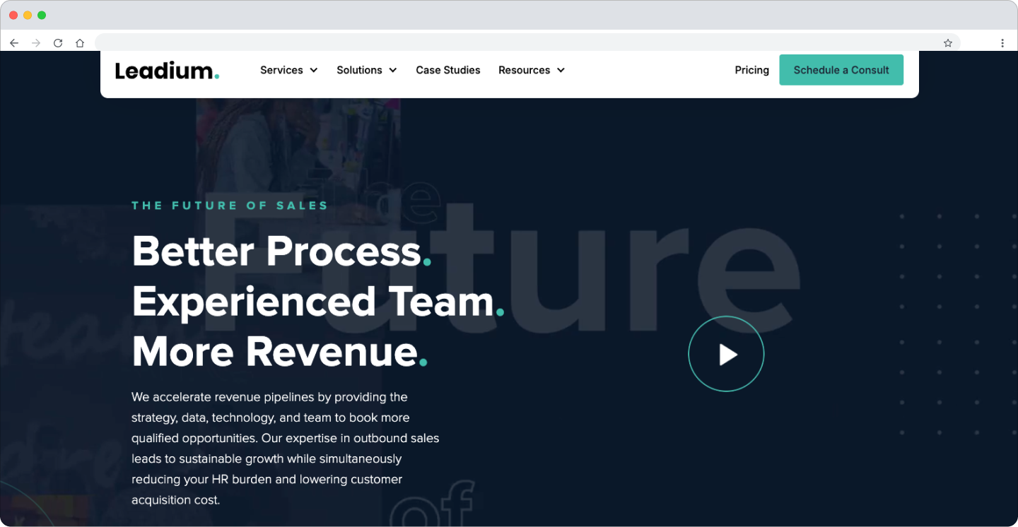 Leadium is a US-based B2B lead generation and appointment setting agency. Smaller and more boutique than the agencies above, they run full-service sales outsourcing with a focus on manual research, rigorous ICP definition, and channel-optimized outbound across email, phone, LinkedIn, SMS, and strategic gifting.
