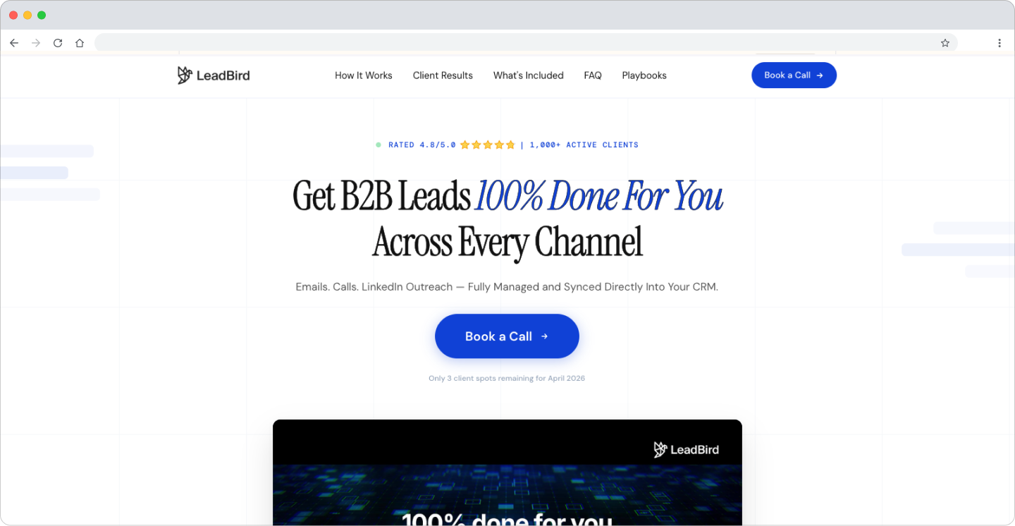 LeadBird is a US-based cold email specialist and official Clay Solutions Partner. The agency focuses on high-volume cold email infrastructure — dedicated domains, mailbox rotation, and deliverability discipline — for teams that need email as the primary channel.