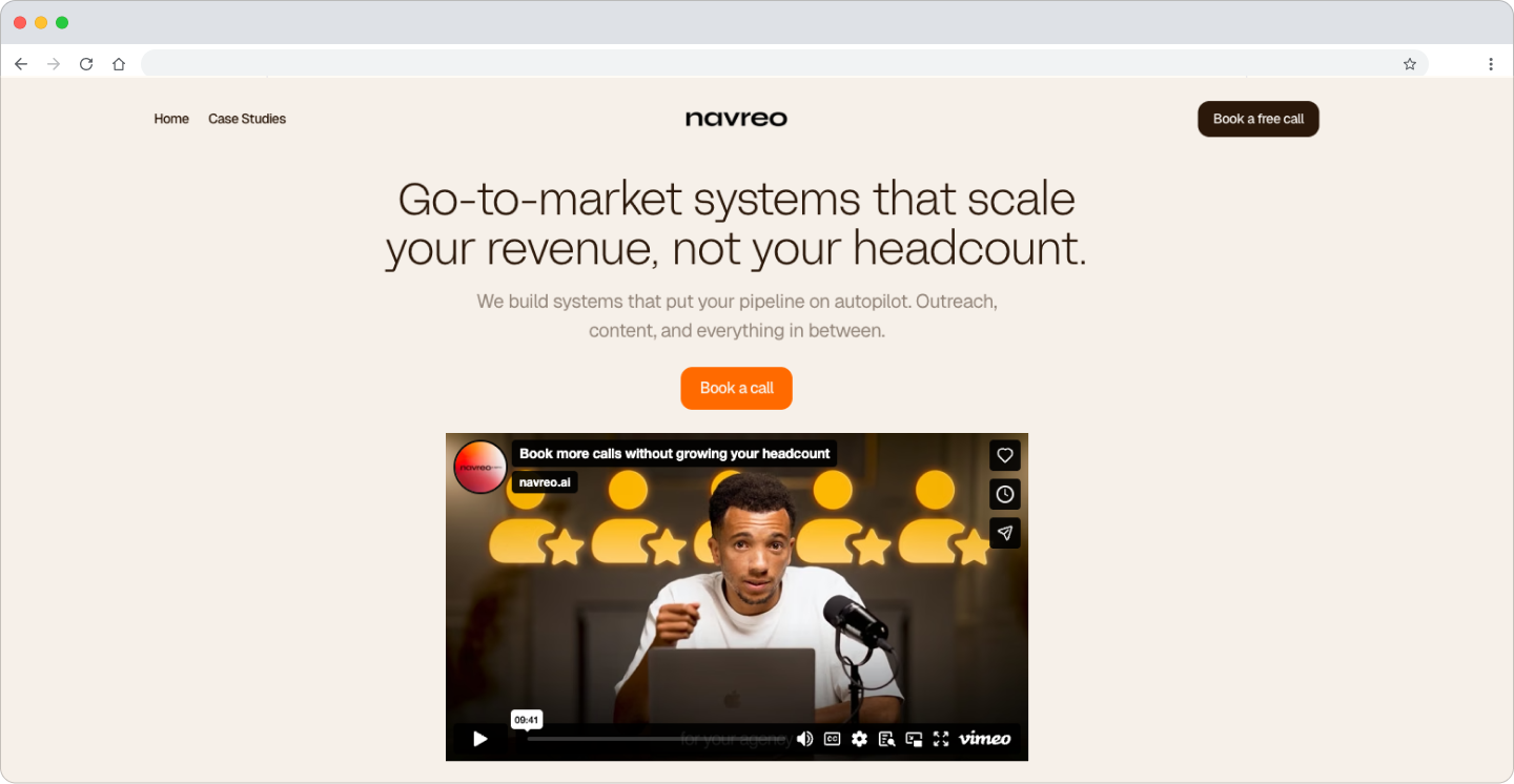 Navreo runs AI-driven signal-based outbound, using Clay and AI agents to monitor buying signals and trigger outreach at the moment of highest intent.