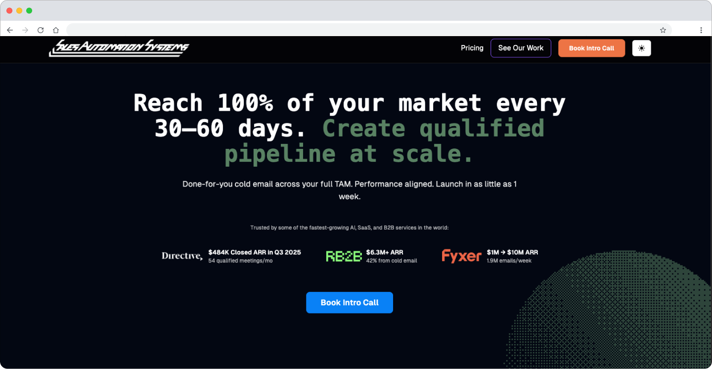 Sales Automation Systems focuses on building custom Clay workflows and outbound automation infrastructure. They sit at the more technical end of the Claygency spectrum, often handing over ownership of the systems they build.