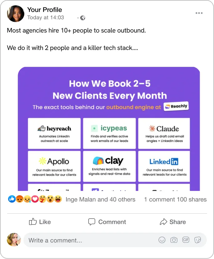 We track what’s working and what’s driving inbound conversations, not just engagement. Then we refine the strategy every month so your LinkedIn gets sharper and more effective over time.